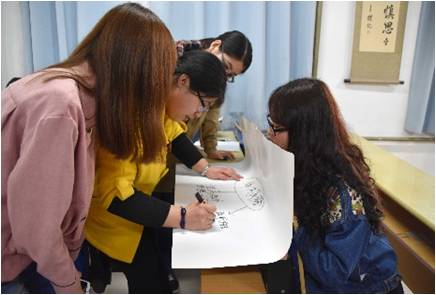 安恒华老师将自己多年教育工作的丰富经历和感悟,结合当前基础教育凸显的主要问题,采用“第六种教学方式”呈现给大家,通过分组、大小卡片记录、海报设计、演讲展示等环节,引领大家展开问题讨论并提出解决策略。与会的老师和同学们都积极参与了互动,现场气氛活跃、热烈。随后,安老师在活动总结中,结合自身经历和感悟提出好老师的基本要求:职业定向+事业心+爱心。他通过这种别开生面的形式,为师范生消除了未来的职业困惑,指明了努力方向!