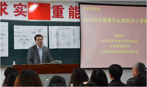 化学(师范)专业90届优秀毕业生、大连市保税区教育文化体育局局长安恒华应邀作“当今社会需要什么样的中小学教师”主题报告,党总支书记刘智广,快看漫画