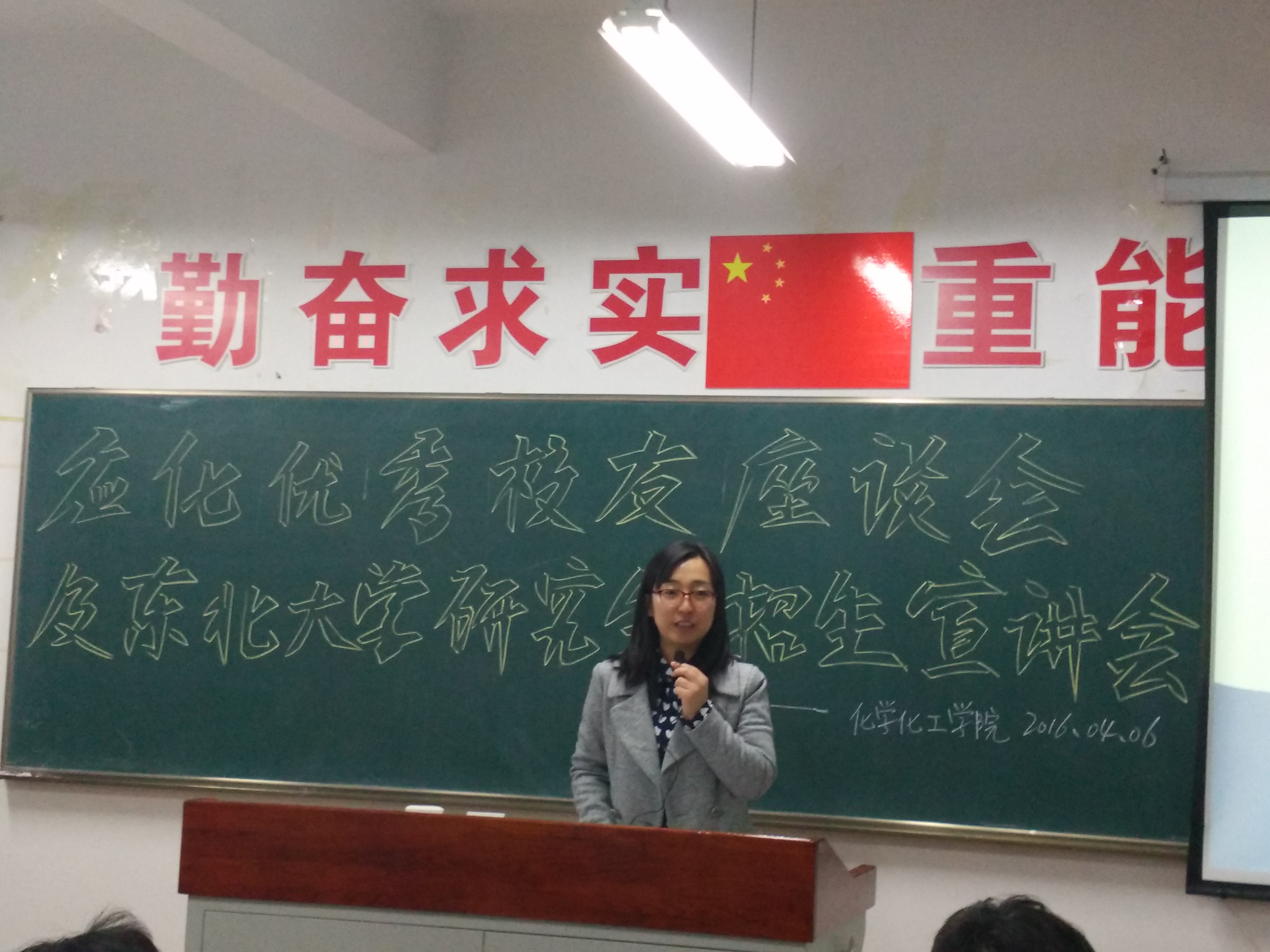 杨春光校友与同学们分享了自己的求学经历及工作经验。她指出,辽师应用化学专业的理论课程、实验课程和实践课程设计非常好,加上老师们认真负责的教学态度,帮助她奠定了扎实的理论基础和实验技能;多样的课外活动增强了她的团队意识和拼搏精神,这些都为她日后的发展奠定了良好的基础和提供强大的助力。同时她还就考研的心态、方法等与同学们分享,并介绍了东北大学招收研究生的详细情况。杨春光校友坦诚的态度、质朴的语言、幽默风趣的例子,使同学们受益匪浅。大家深受鼓舞,踊跃就感兴趣的问题和自己的困惑与校友进行交流,场面亲切而热烈。本次座谈会使13级同学在升学还是就业选择上深受启发,14、15级同学也明确了在校期间的努力方向。