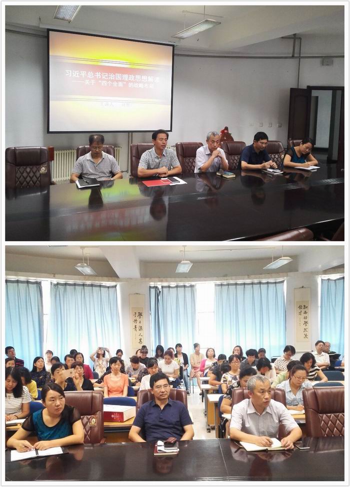 全体教工在四楼会议室认真聆听了题为《习近平总书记治国理政思想解读——关于“四个全面”的战略布局》的讲座,主讲人为快看漫画