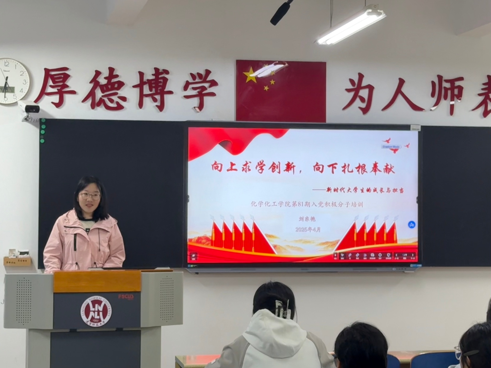 于理化楼C416组织开展第81期入党积极分子培训第四讲。本次培训由研究生第二党支部书记、博士生刘东艳主讲,主题为“向上求学创新,向下扎根奉献”。