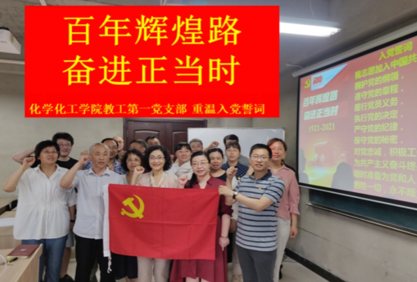 教工第一党支部全体党员教师,于2021年7月1日在理化楼B106,重温入党誓词。