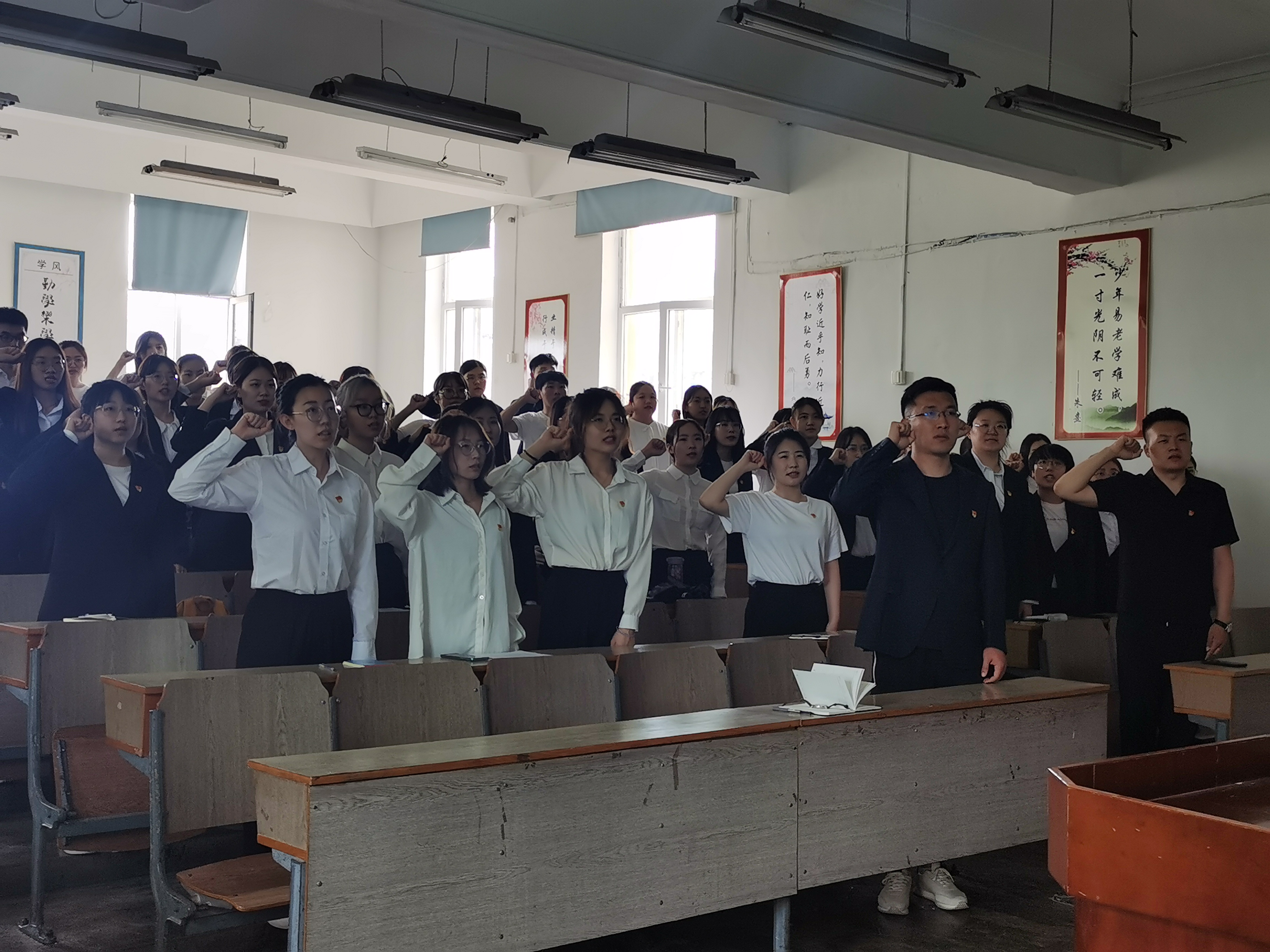 党委在管理楼202举行新党员入党宣誓暨老党员重温入党誓词仪式,出席本次仪式的有我院团委书记唐志建,辅导员老师姚洪磊,本科生支部、研究生一支部、研究生三支部全体党员。