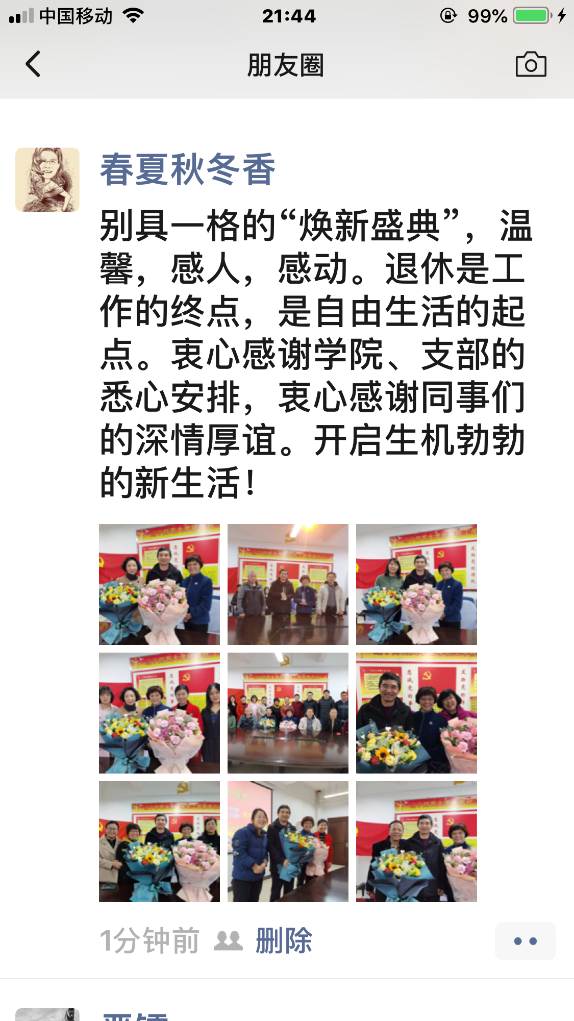 退休不是离开,而是多了一份牵挂;退休也不是停止,而是翻开新的篇章。祝愿于世钧、赫春香两位老师今后的生活更加幸福、健康、快乐!
