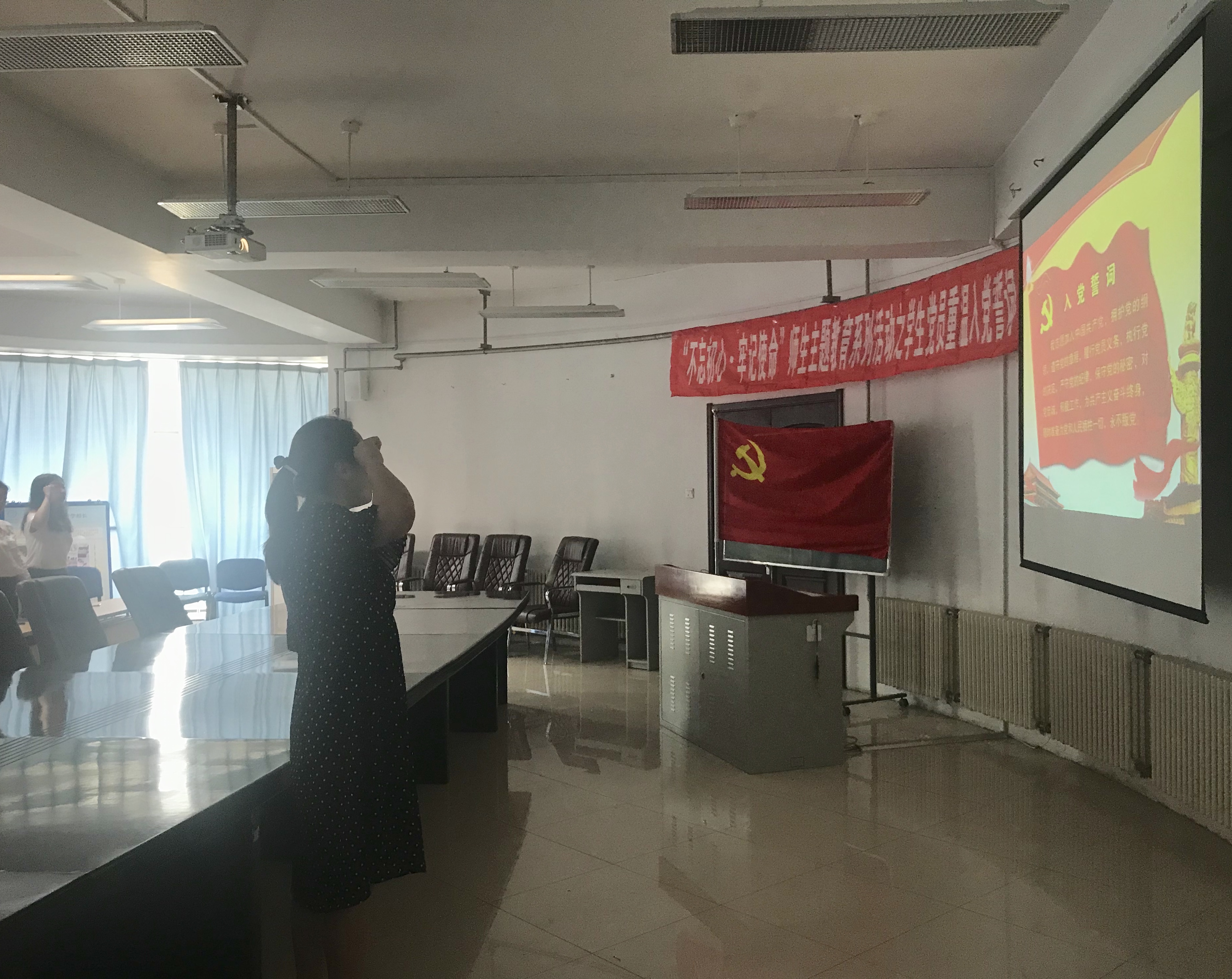 全体学生党员在理化楼C401举行了“不忘初心、牢记使命”师生主题教育系列活动之“我和我的祖国”主题党日活动。
