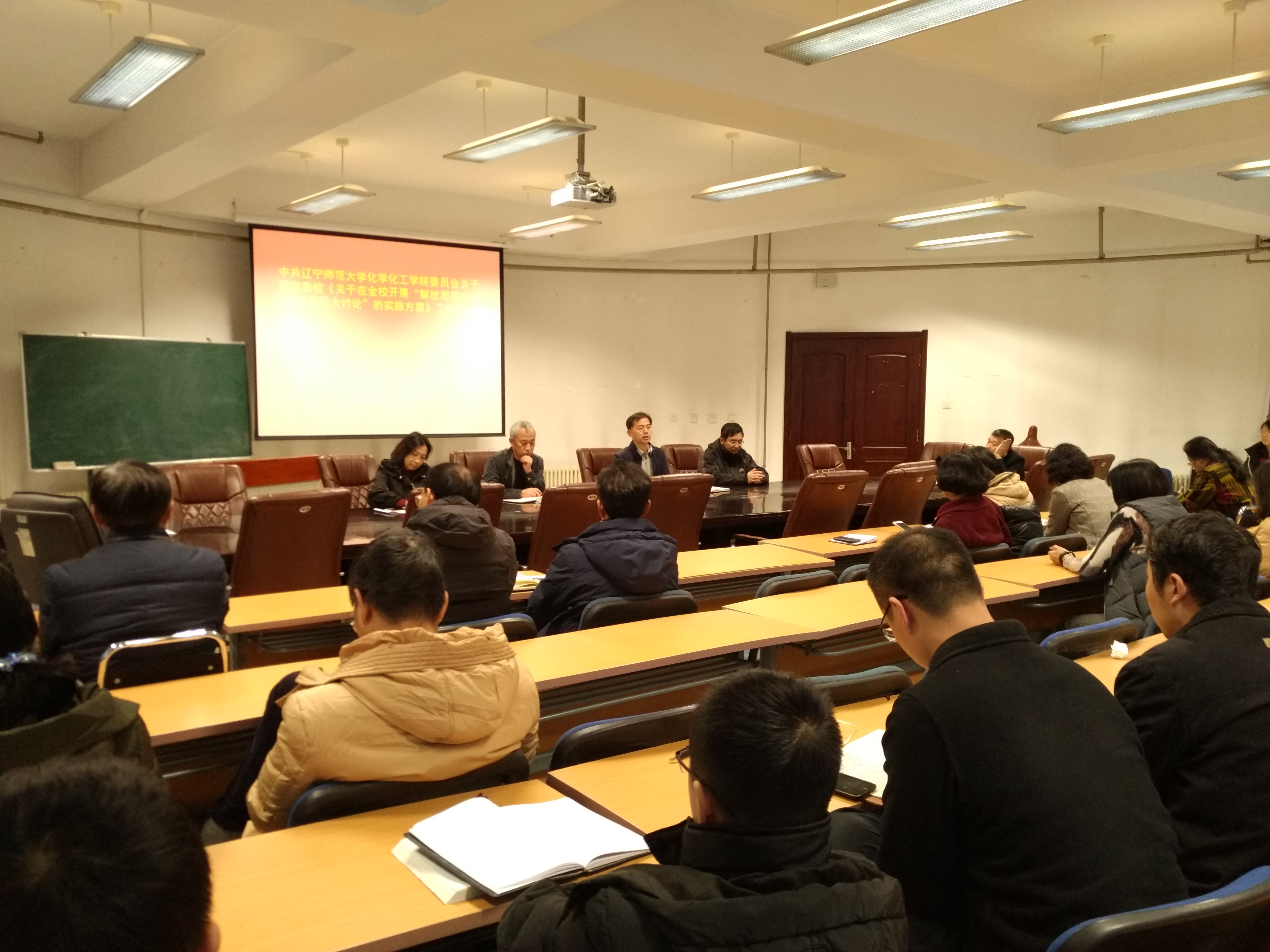关于落实我校《关于在全校开展“解放思想推动高质量发展大讨论”的实施方案》工作部署会在理化楼C401召开。会上,刘智广书记传达了中共辽宁师范大学委员会印发的《关于在全校开展“解放思想推动高质量发展大讨论”的实施方案》等相关文件精神,并进行了大讨论工作部署。他强调,全院师生,尤其是党员干部要高度重视,积极参与,以“抓重点、强弱项、促发展、见实效”为目标,坚持问题导向,采用线上线下齐动大讨论方式,在“七破”和“七立”上下功夫,为推进学院、学校高质量发展和辽宁全面振兴贡献智慧和力量。