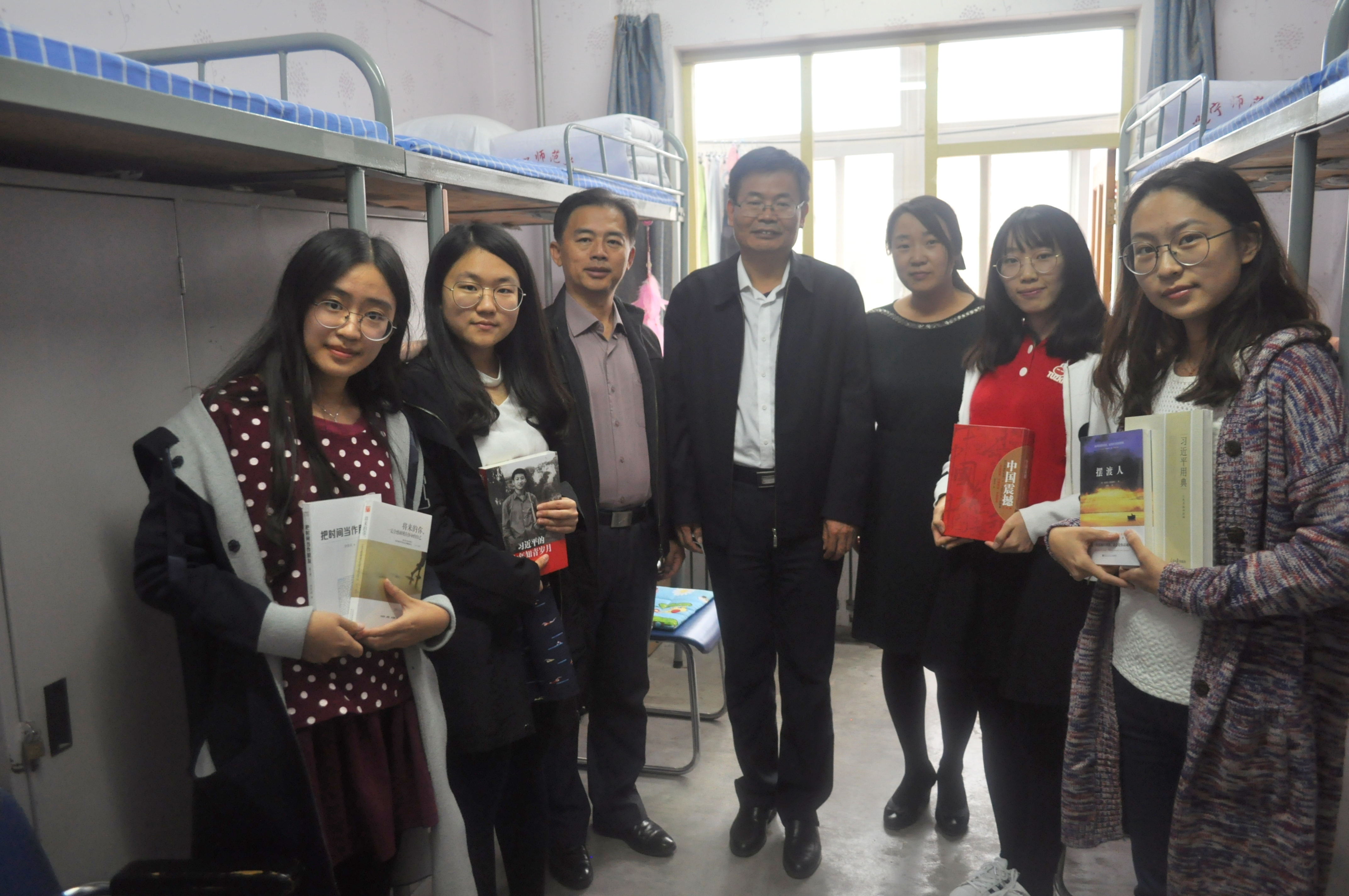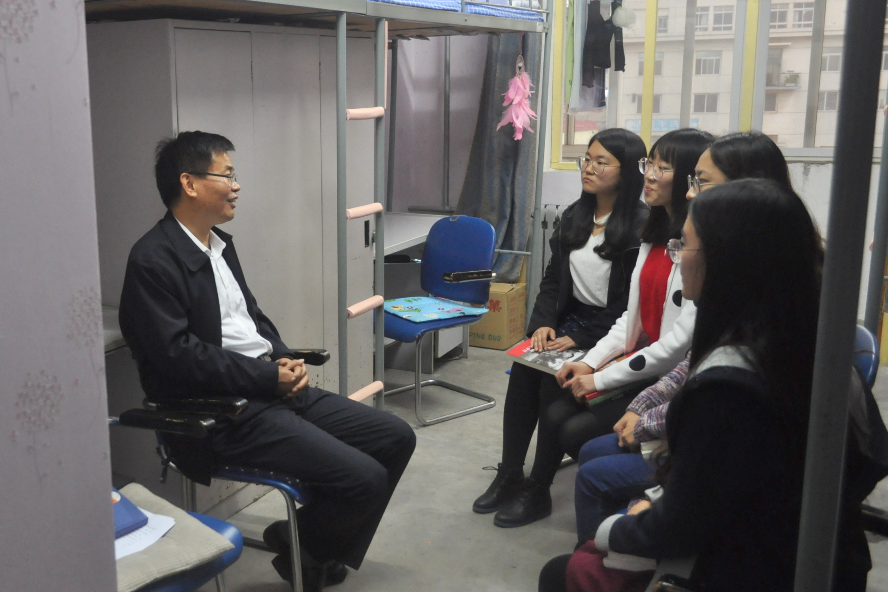 10月18日下午,岳崇兴副校长走进后大学生公寓城四公寓416学生寝室,与快看漫画