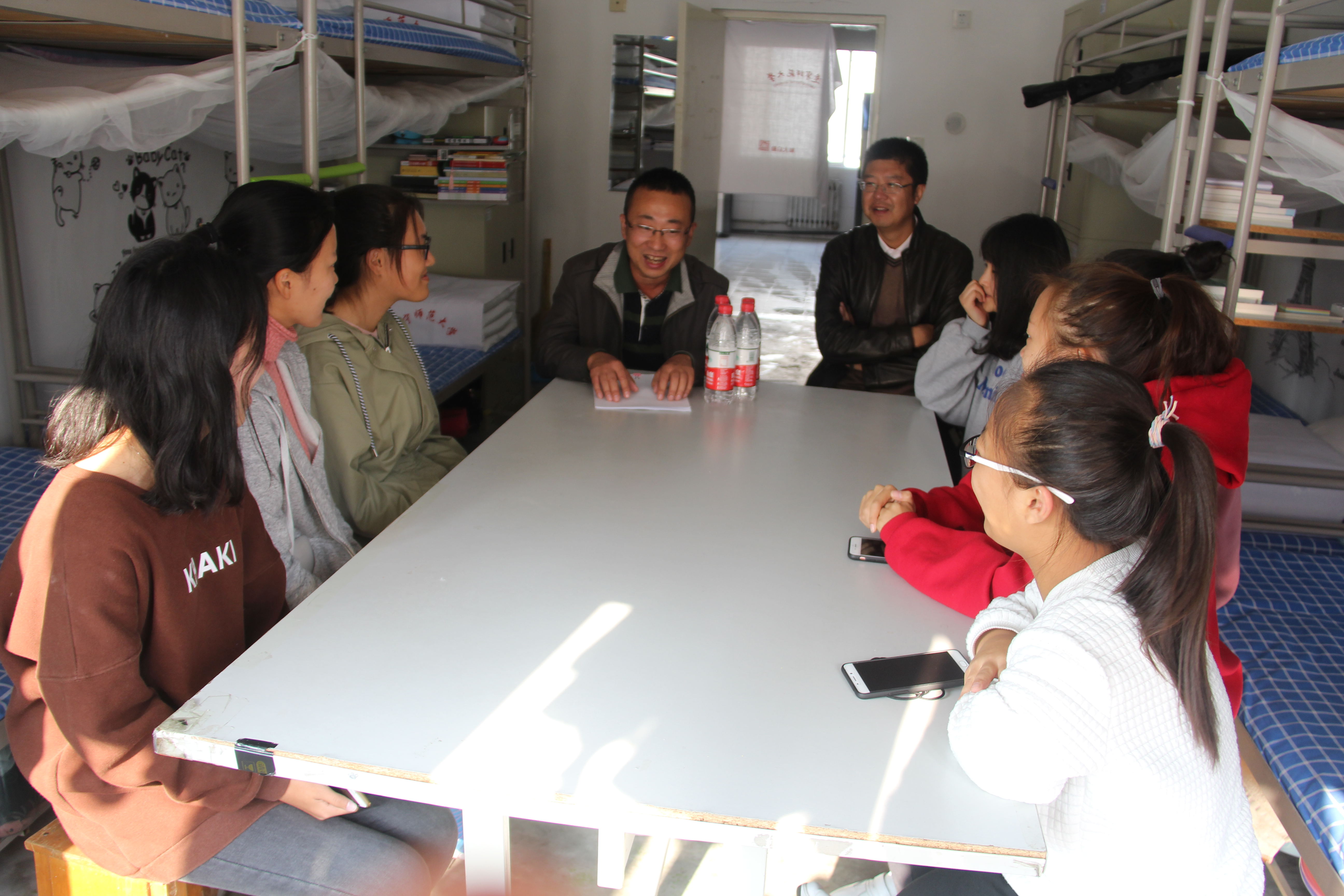 座谈中,史桢昕老师和曲守勋老师亲切地询问了同学们学习、住宿等方面情况,并就如何经营好未来的大学生活与同学们做了深入的交流,对同学们提出了殷切的希望:一要明确目标,做好规划,从大一开始就要有保研、考研的想法;二要积极参加各类活动,主动融入到集体和社会中,丰富自身硬件条件,提升自身的综合素质,为自己的将来增添筹码;三要学会相互包容、相互体谅、相互关心,珍惜大学中难能可贵的同学情谊。