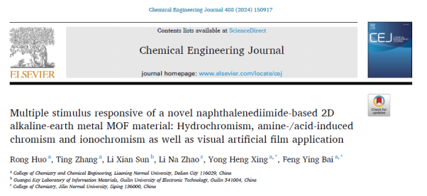 论文信息:Multiple stimulus responsive of a novel naphthalenediimide-based 2Dalkaline-earth metal MOF material: Hydrochromism, amine-/acid-inducedchromism and ionochromism as well as visual artificial film application