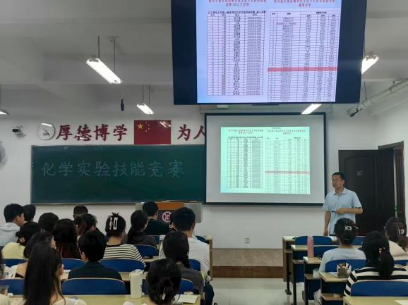 举行了“辽宁师范大学第十届本科生基础化学实验技能竞赛”,在5月14日和6月中旬分别完成了笔试初赛和实验决赛。根据比赛成绩确定了30人名单。在确认名单后,经实验教学中心的多位老师的指导下,参赛学生进行了系统的理论知识和实验操作培训,最终取得佳绩。